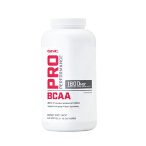 Suplemento de aminoácidos de cadena ramificada (BCAA) en cápsulas blandas que aporta 1800 mg por porción (6 cápsulas), con una fórmula balanceada de L-Leucina (900 mg), L-Isoleucina (630 mg) y L-Valina (270 mg). Apoya la energía durante el entrenamiento, la construcción y protección muscular, reduce la fatiga y mejora la recuperación.